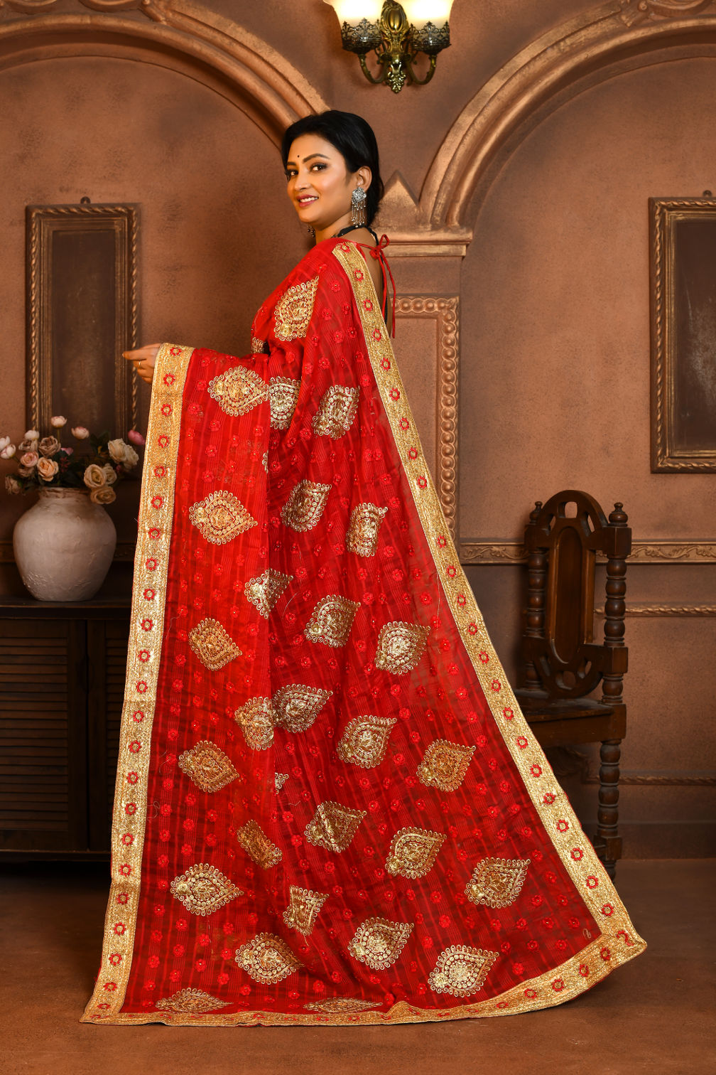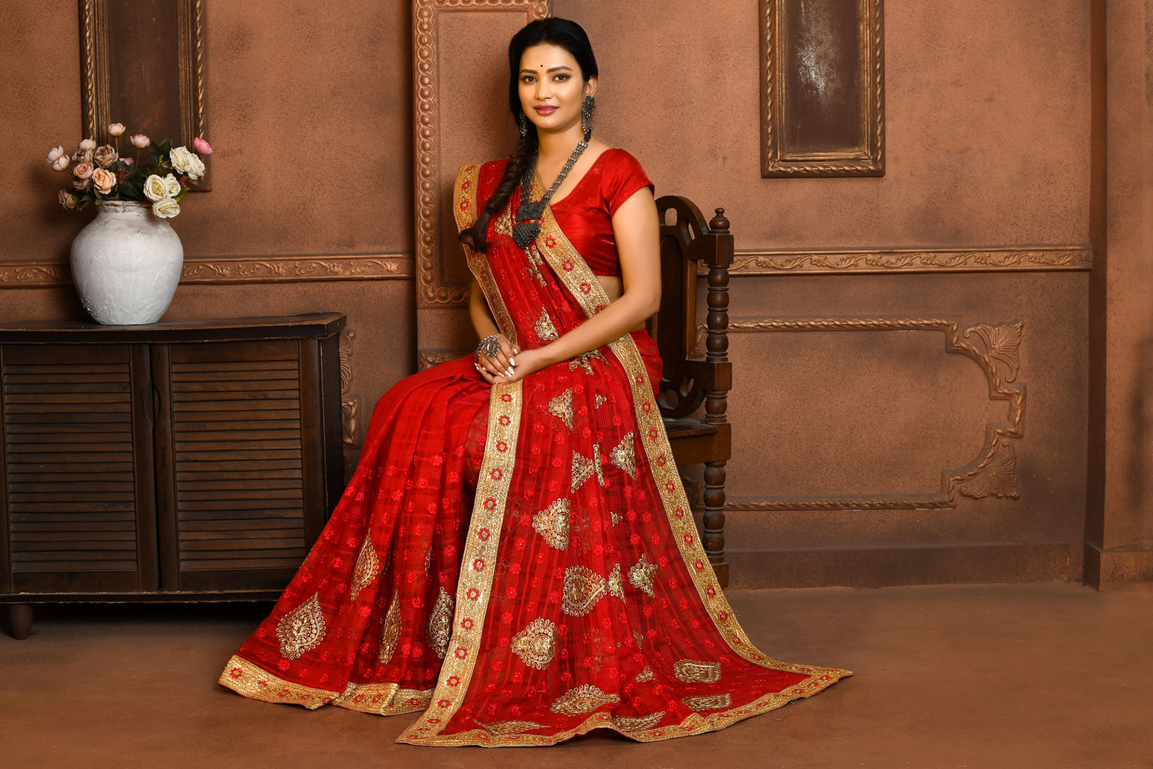 Pure cotton saree Embroidred all over based on skin-friendly material which follow up a woman’s look from day to sunset.