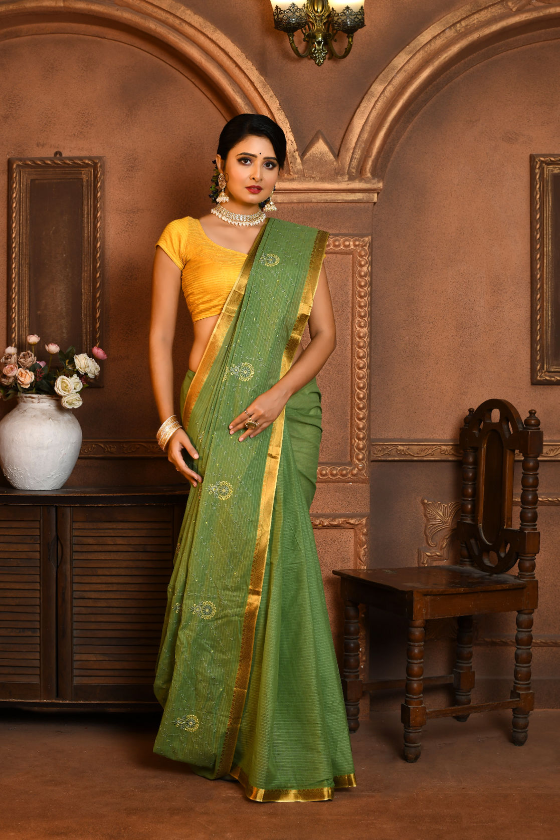 Pure Cotton Embroidered Sarees are quite ornate and lend a rich look and feel.